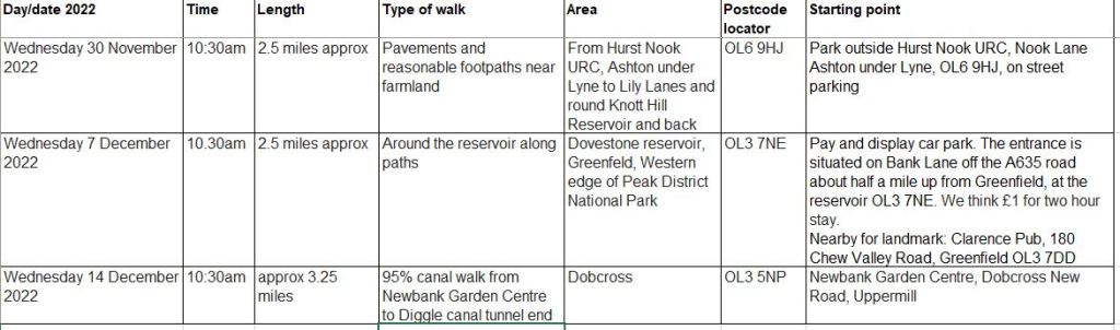 Please see attached below details of walks planned (which may be changed subject to weather/traffic conditions). Please contact Pauline via 07879 359 783 if you have any issues on the day. (Whatsapp etc) .